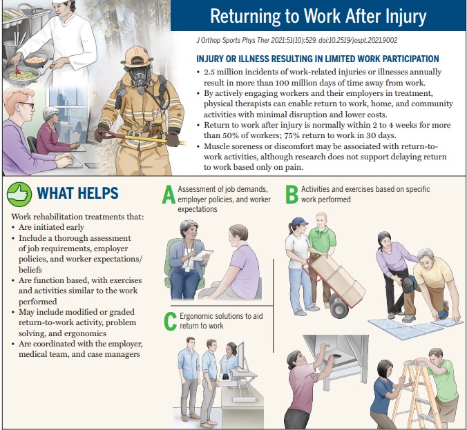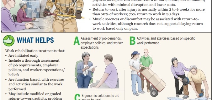 • By actively engaging workers and their employers in treatment, physical therapists can enable return to work, home, and community